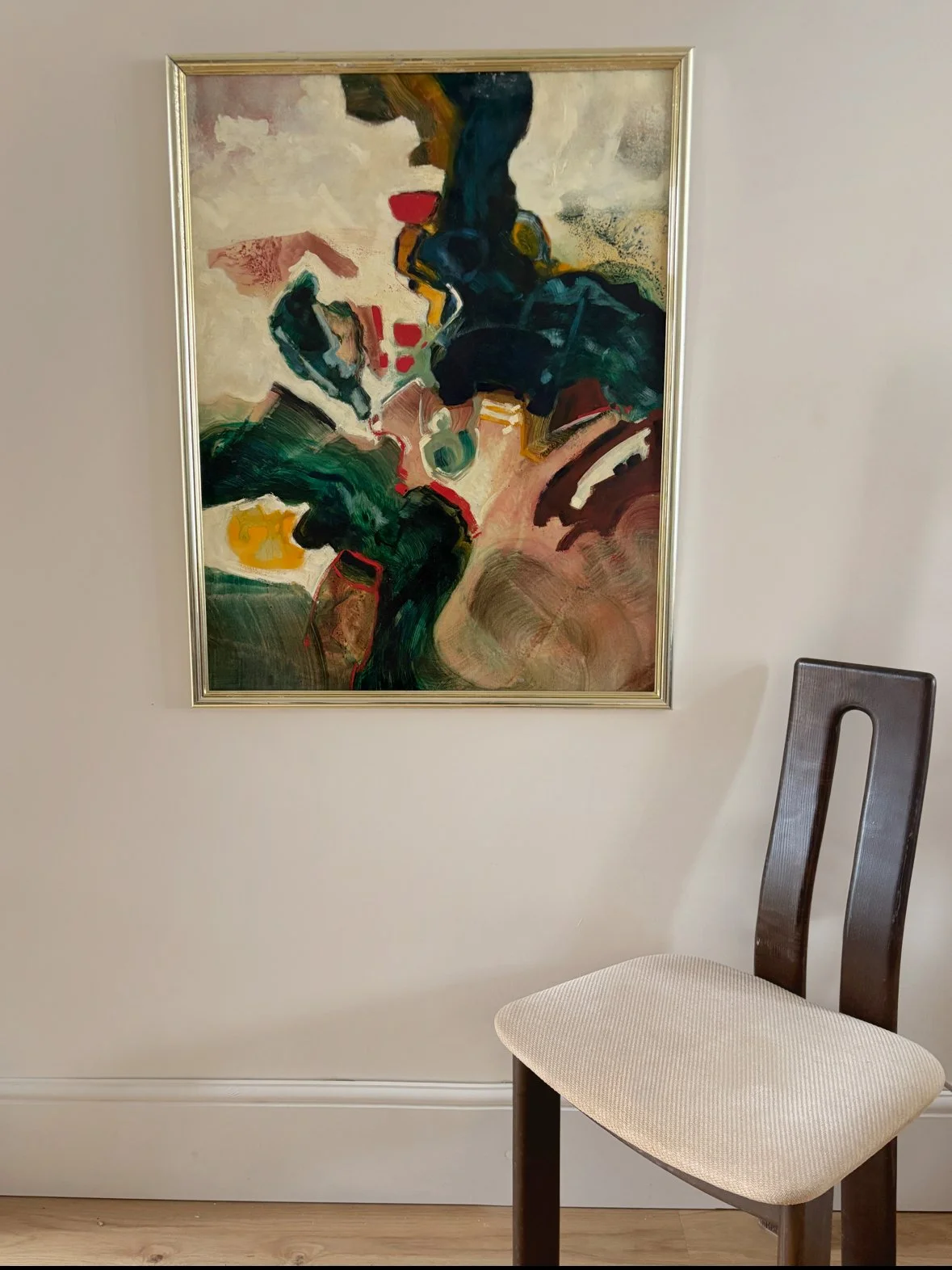 Newsletter drop › Mid-20th-century abstract oil painting on canvas featuring gestural brushwork, with layered impasto and visible palette-knife texture. Signed bottom right Image 1 of 5 Image 2 of 5 Image 3 of 5 Image 4 of 5 Image 5 of 5 Mid-20th-century abstract oil painting on canvas featuring gestural brushwork, with layered impasto and visible palette-knife texture. Signed bottom right GBP 680.00 94cm x 74cm £680 +pp Add To Cart Added! 94cm x 74cm £680 +pp