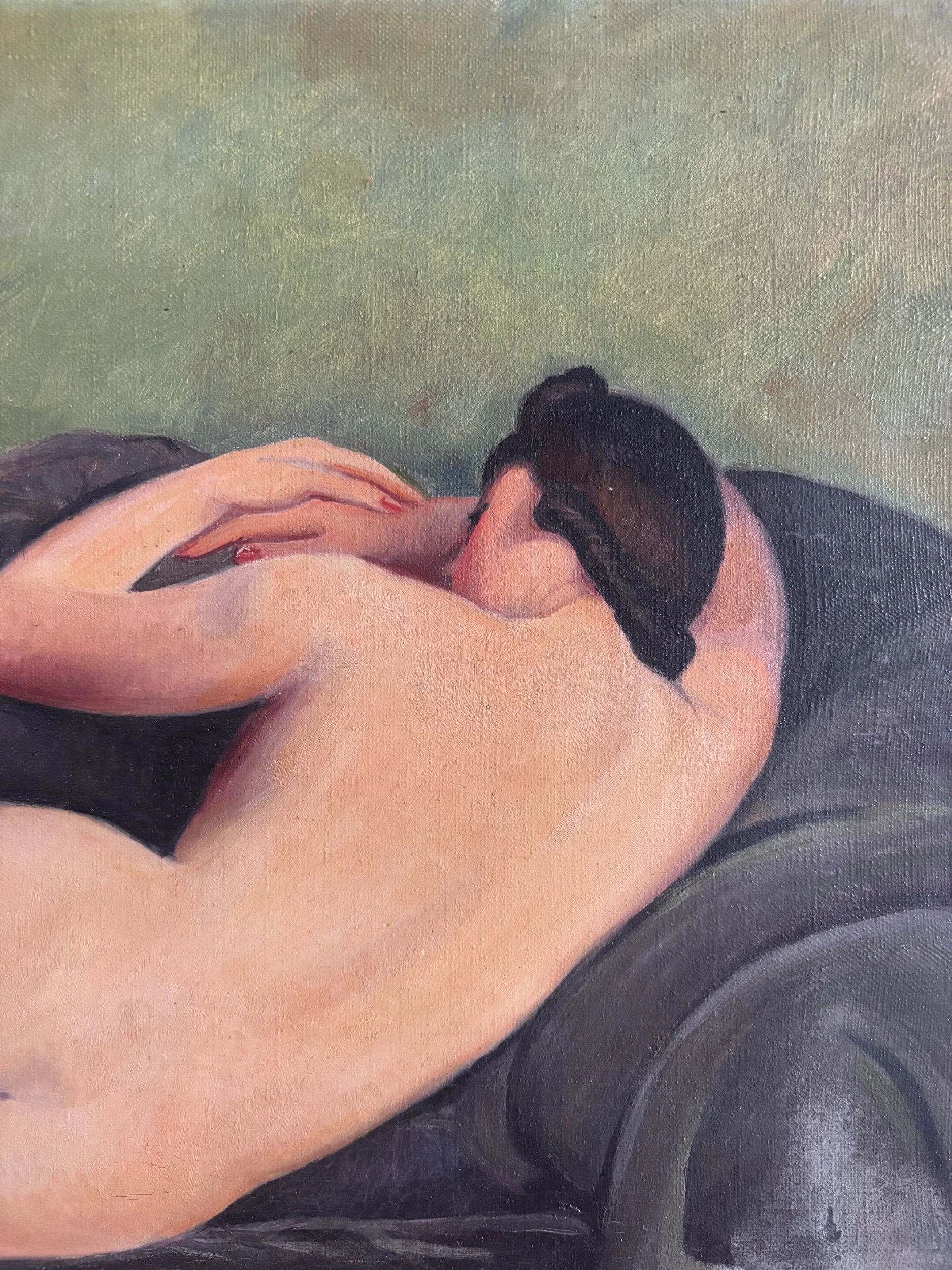 Reclining nude lying on day bed. Not dated but likely to be 1920/30s. Sourced in France.