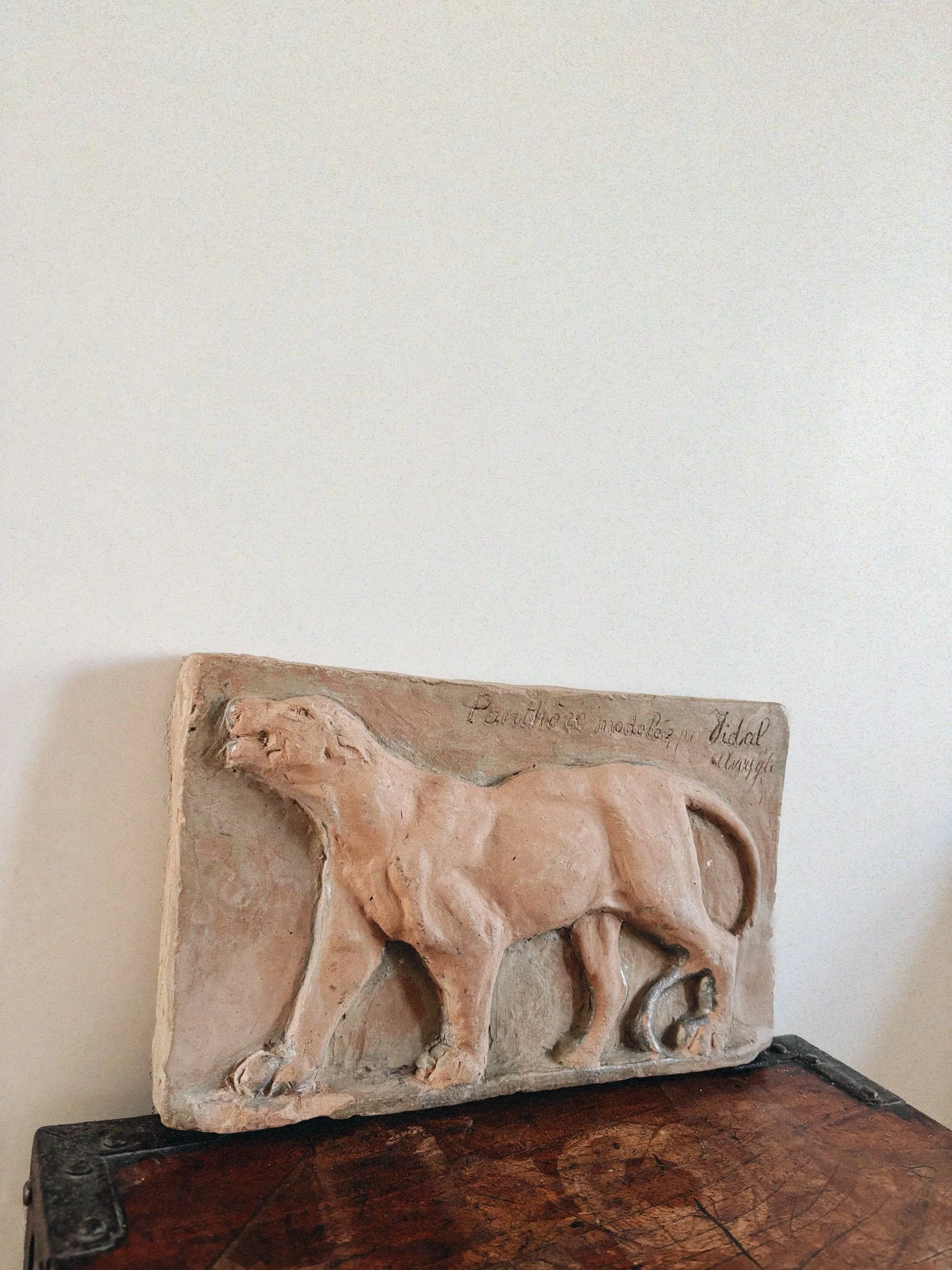 A terracotta relief plaque of a panther profile, by French animal sculptor Louis Vidal (1831-1892)