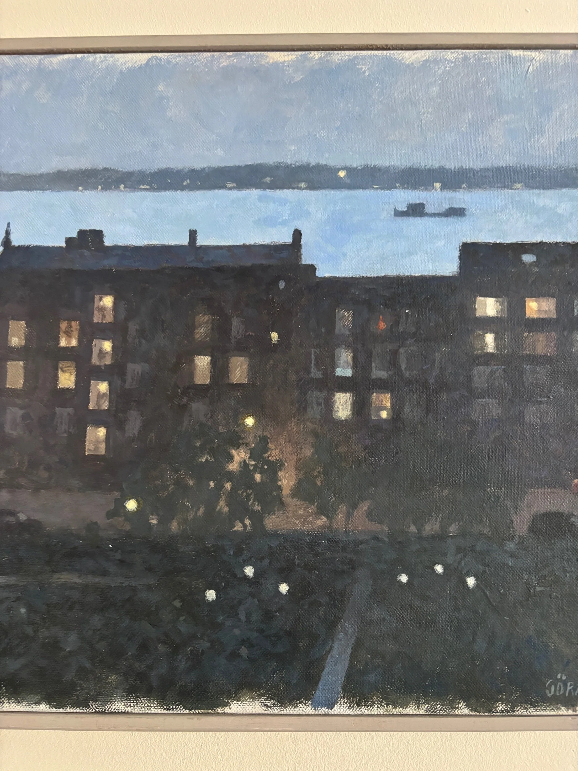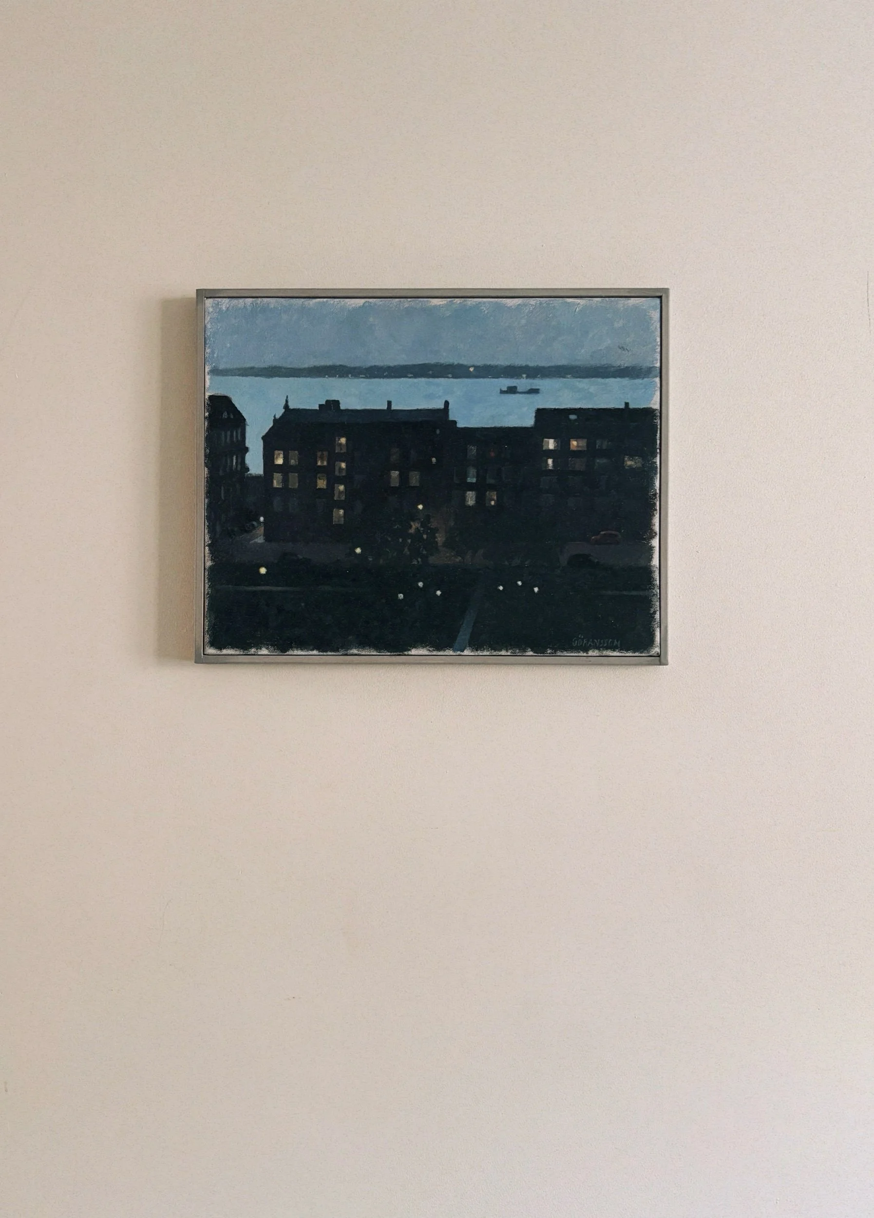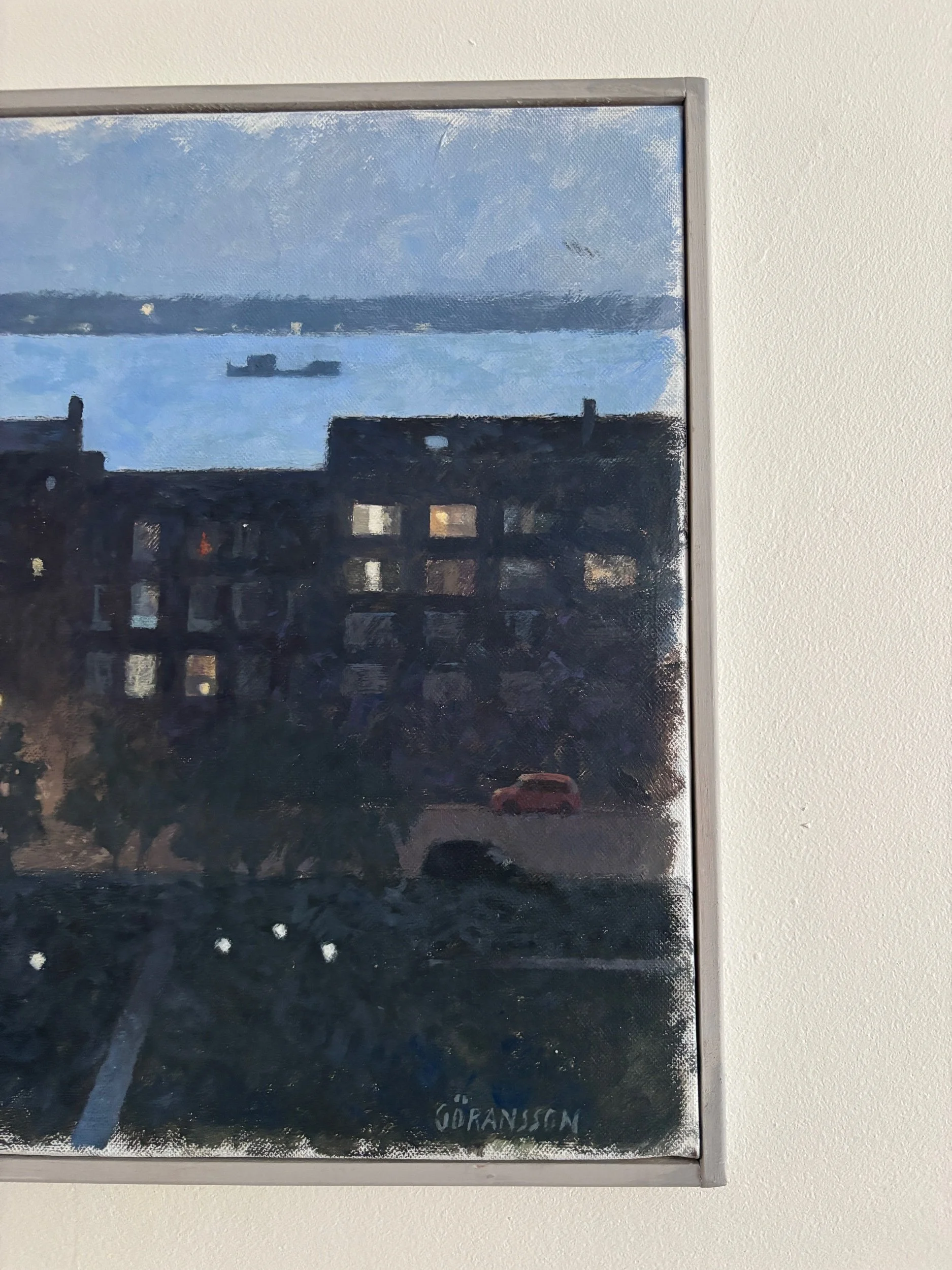 Shop › Oil painting on canvas of town at dusk. Image 1 of 4 Image 2 of 4 Image 3 of 4 Image 4 of 4 Oil painting on canvas of town at dusk. GBP 240.00 sold out 35x44cm £240 +pp Sold Out Added! 35x44cm £240 +pp