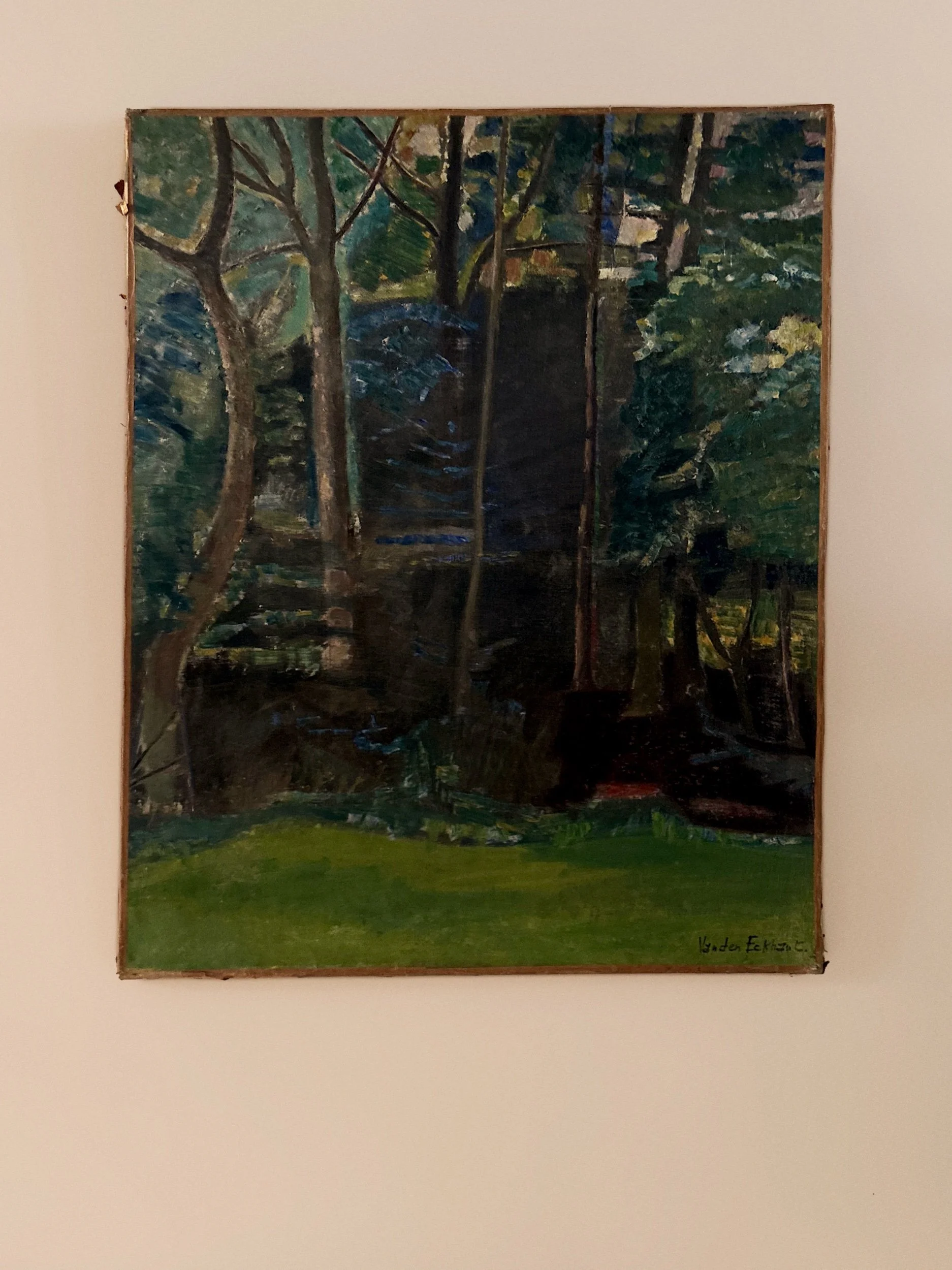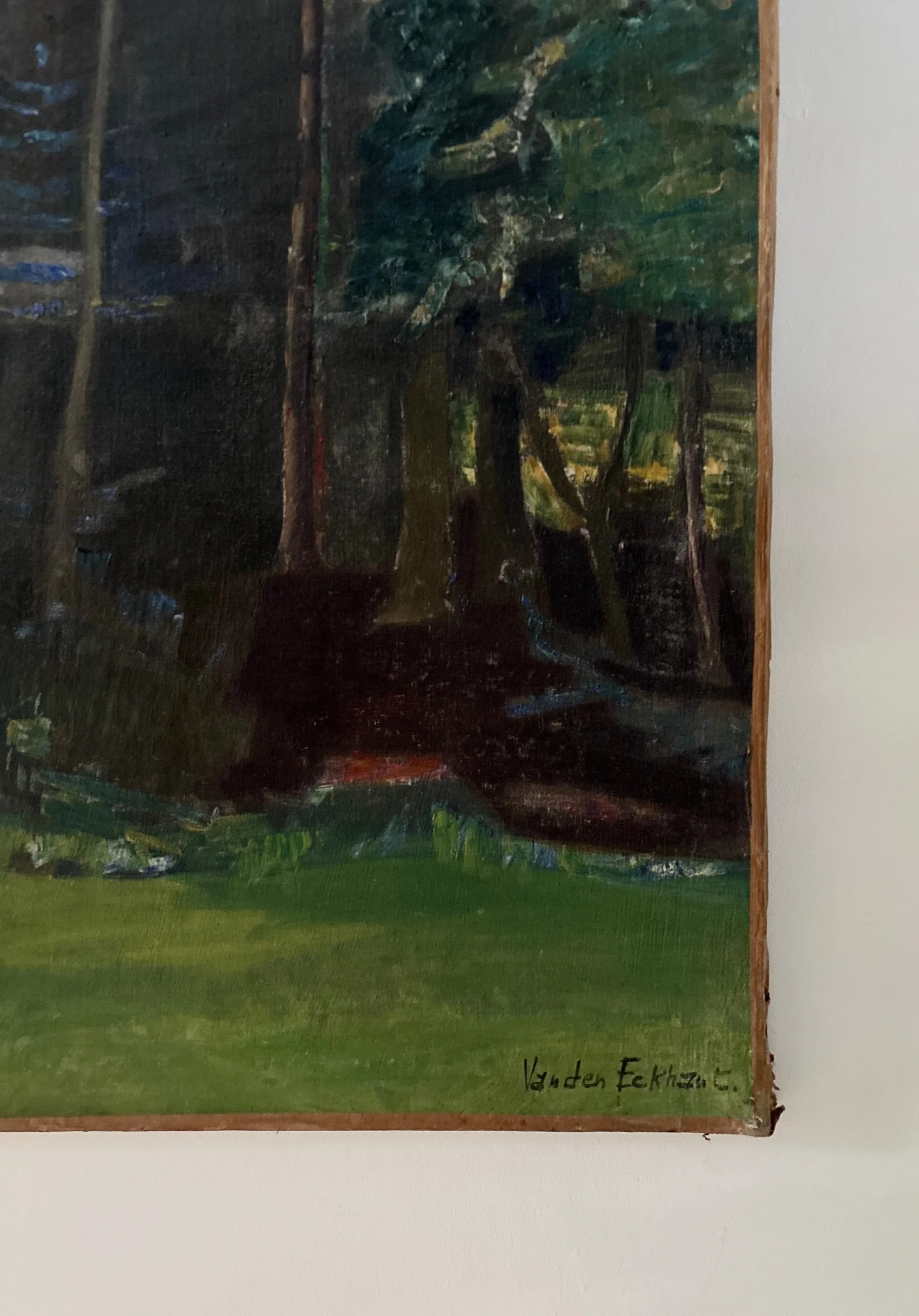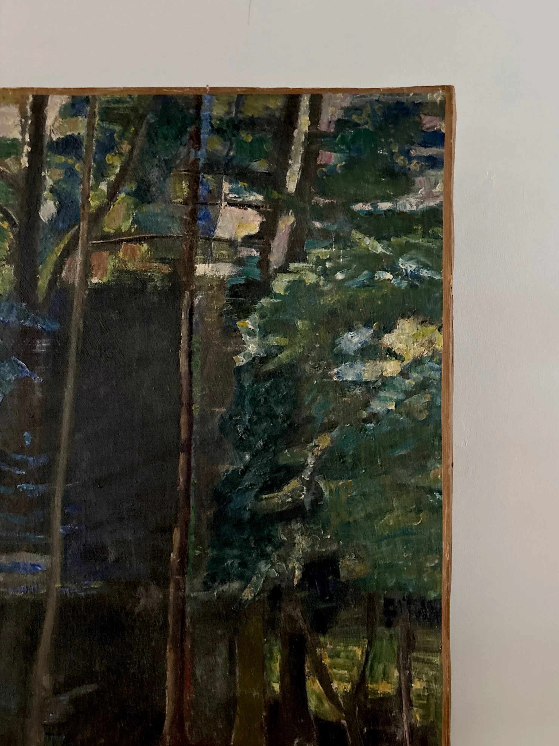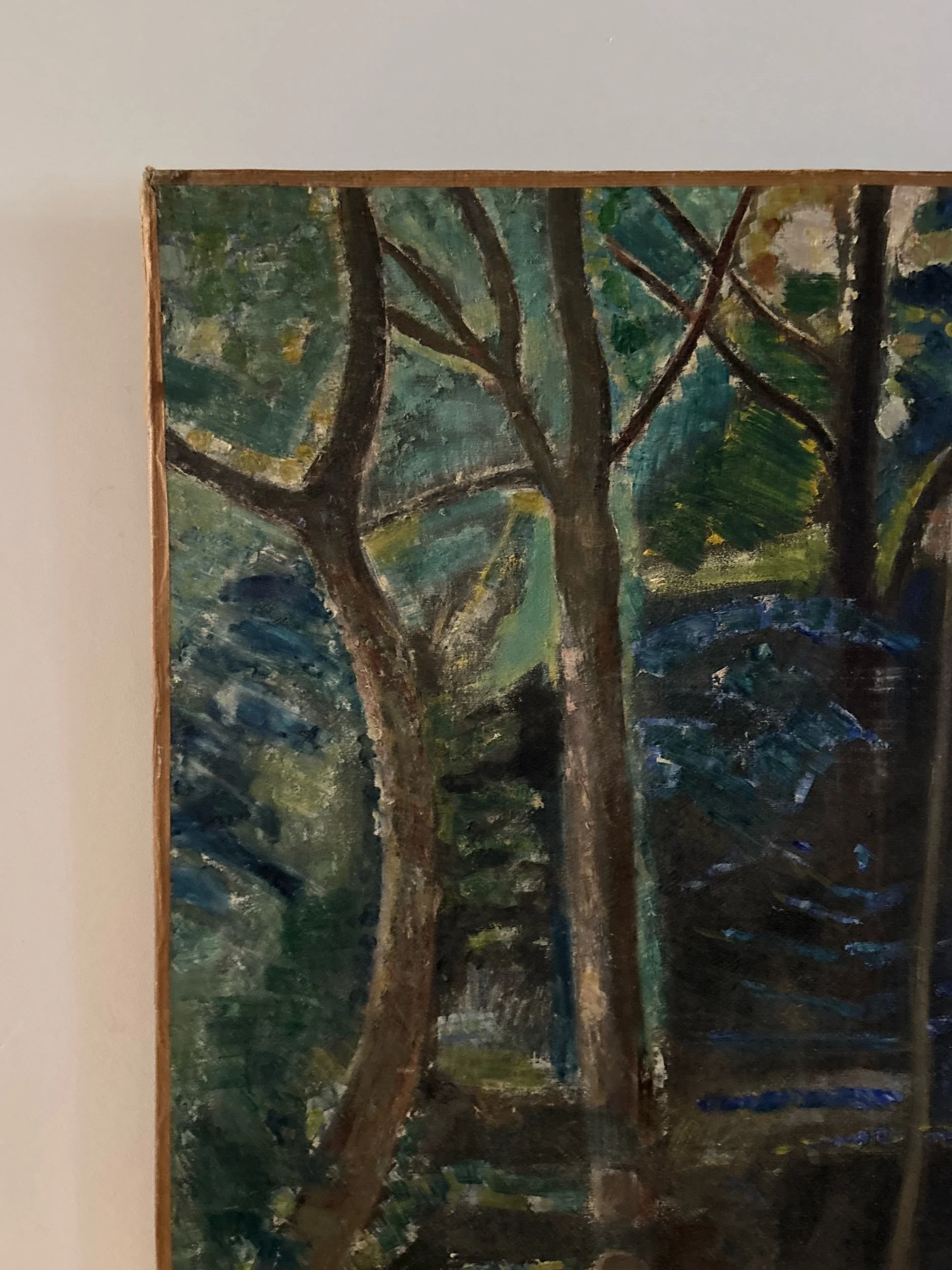 Forest French oil painting on canvas. Signed bottom right.