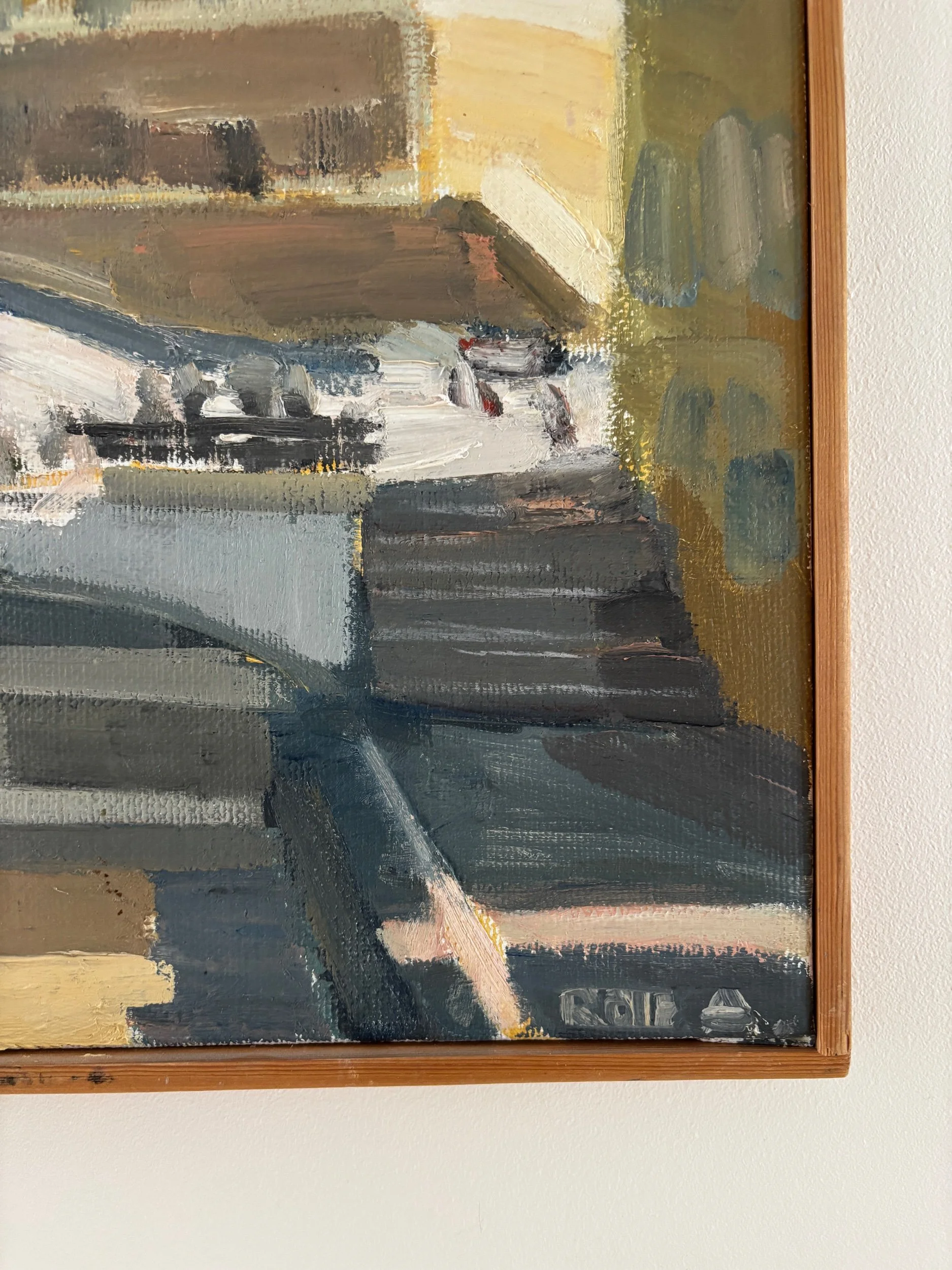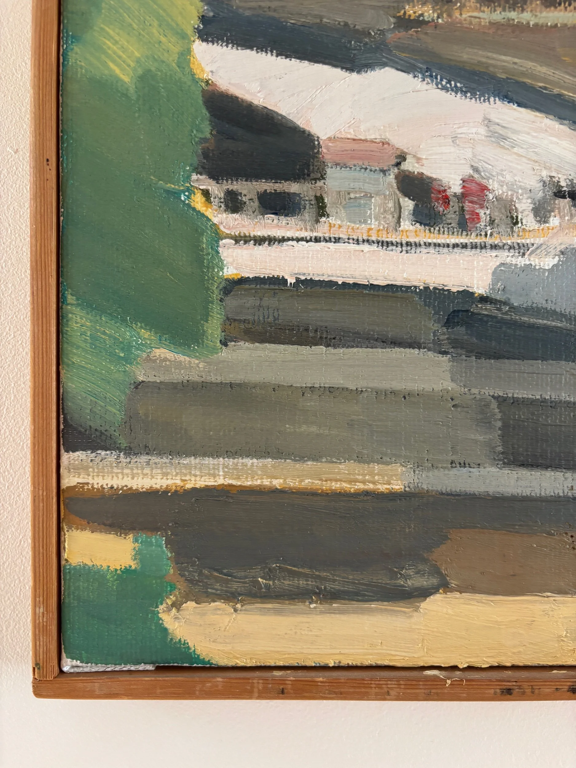 Shop › View of bridge, oil painting on canvas. Signed &dated 89 in wooden box frame. Image 1 of 5 Image 2 of 5 Image 3 of 5 Image 4 of 5 Image 5 of 5 View of bridge, oil painting on canvas. Signed &dated 89 in wooden box frame. GBP 240.00 sold out 36cm x 32cm Sold Out Added! 36cm x 32cm
